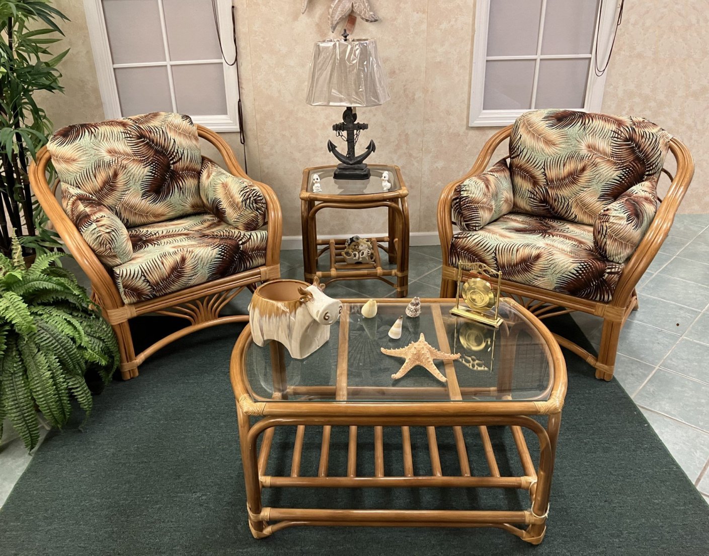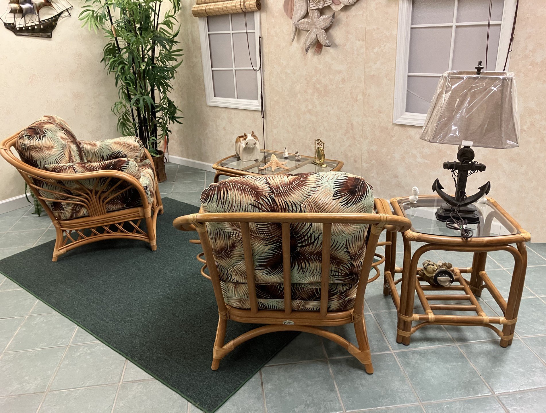 This versatile set includes a sofa, loveseat, chair, ottoman, end table, and coffee table, providing everything you need for a functional and inviting space. Perfect for sunrooms, living areas, or patios, the Bali Rattan set enhances your home’s atmosphere.
