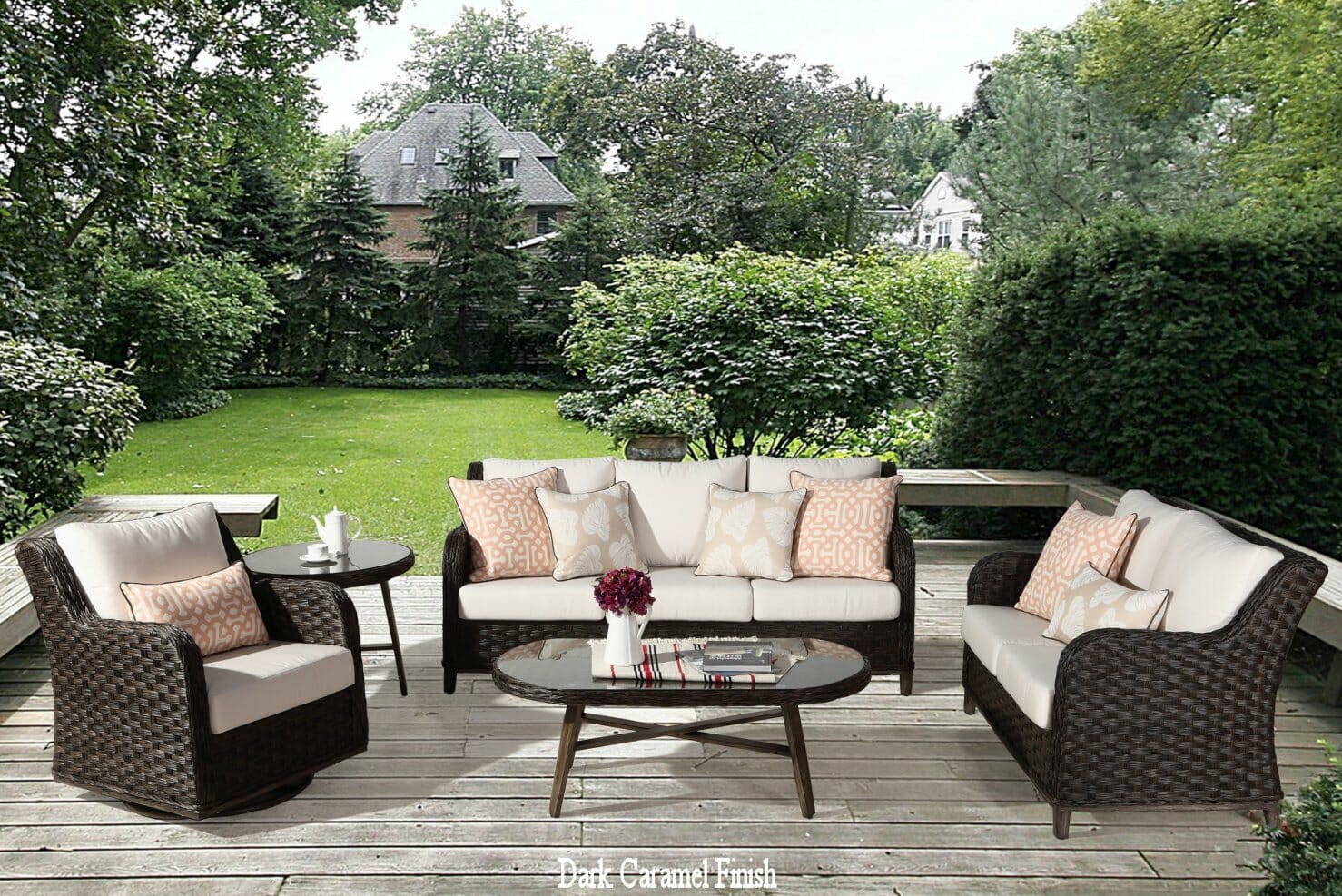 The Grand Wicker Sectional is made from synthetic wicker skillfully woven over a aluminum frame. It can be enjoyed indoors or outdoors and is designed to be functional and beautiful for many years to come. It is proudly assembled, sewn, upholstered and packed in the USA.