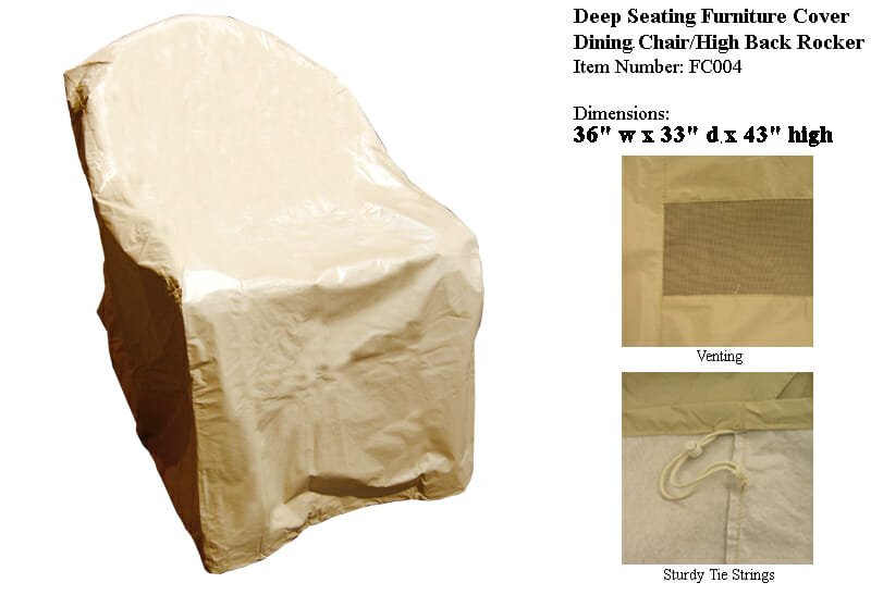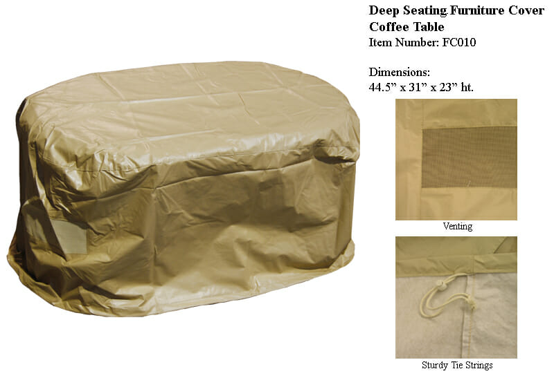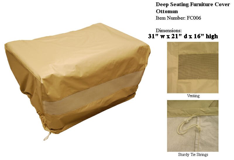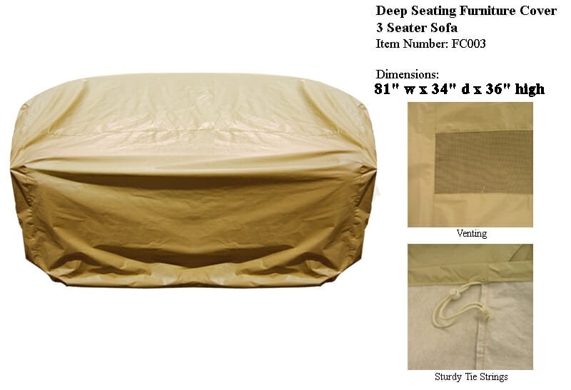 All our outdoor wicker patio furniture covers are equipped with a venting system and sturdy strings for a secure fit. Lightweight for easy handling. Easily cleaned with mild detergent and water. Protect your valuable outdoor furniture with our quality covers. Our covers are made with durable Vinyl and vented to reduce condendation and Lofting. Lofting occures when an enclosed area is not allowed to breathe and as a result the moisture laden air will build up. Eventually the moisture in the air will condensate and turn into water which will result in a damp enviroment that will encourge mildew growth. Venting helps reduce the impact of lofting.
