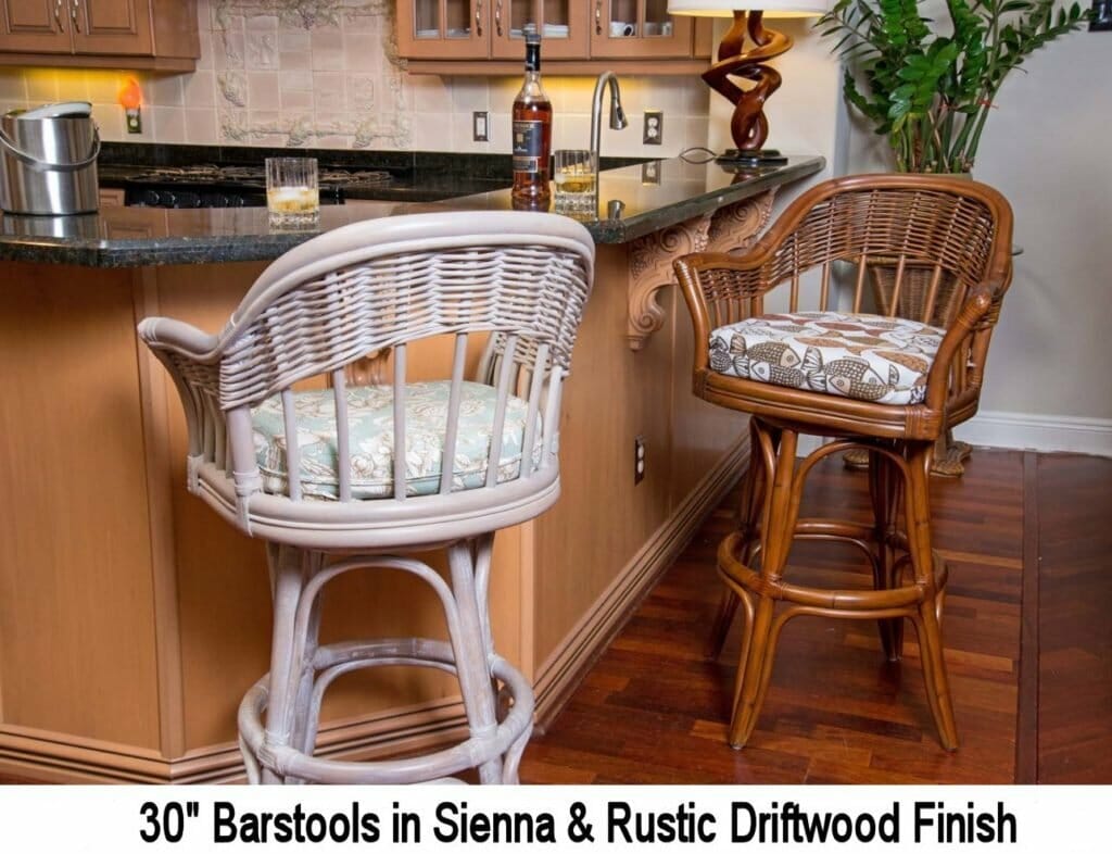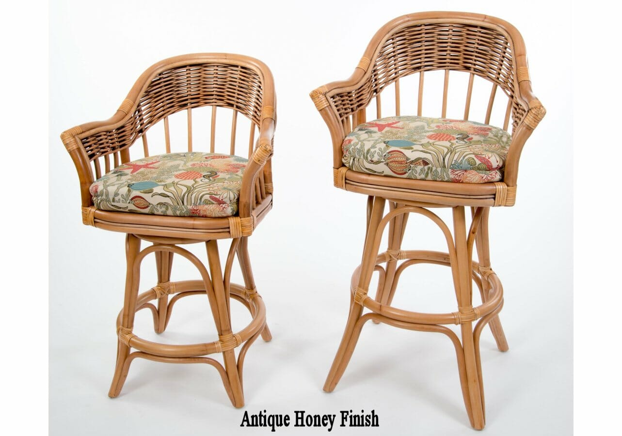 The Bridgeport Rattan Pub Set of three includes: Two “30” barstools w/arms and Pub Table w/36″ Rd.
