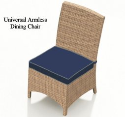 The Universal Outdoor Wicker Dining Set is available as a five or seven piece combo. It is made from all weather (HDPE) high density polyethylene synthetic resin wicker woven over a sturdy aluminum frame. The frame is painted with a powder coating for a more durable finish. In addition, it is Weather and UV resistant.