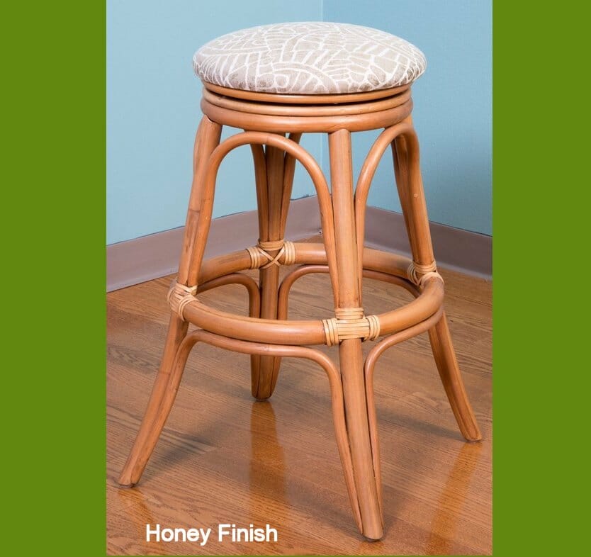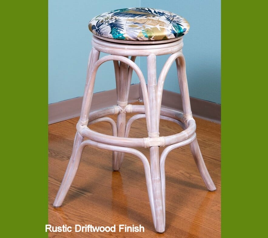 The universal backless barstool is made from quality rattan pole and is available in Sienna, Honey, or Rustic Driftwood Finishes. The seat swivels for added maneuverable.